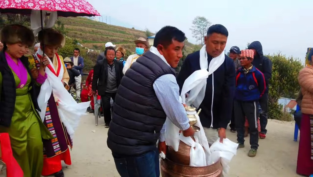 छ्याङा भित्र जन्ती बसिसकेपछि पहिला ङवोसी तोङ्गु (परिचयात्मक) कार्यक्रम हुन्छ । । दुलहीको आमा, बुबा, दाई भाउजु र अन्य नातेदारहरु आई दुलहाको आमा, बुबा र अन्य नजिकको नातेदारहरुसँग परिचय गर्ने काम हुन्छ । त्यसपछि दुलहापक्षका लामा गुरु , दुलाह र बाबु आमा लगायतलाई श्योर्के गर्ने चलन छ ।